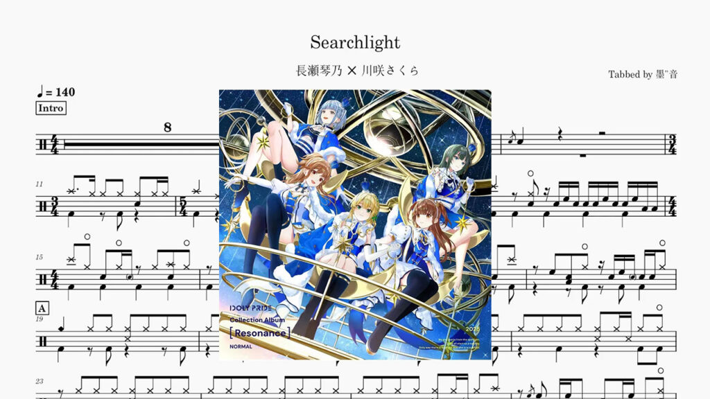 長瀬琴乃 ✕ 川咲さくら – Searchlight Drum Score ドラム楽譜