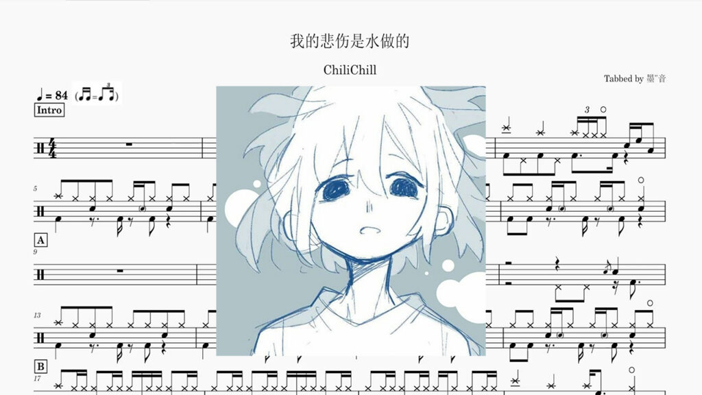 ChiliChill - 我的悲伤是水做的 Drum Score ドラム楽譜ChiliChill – 我的悲伤是水做的 Drum Score ドラム楽譜