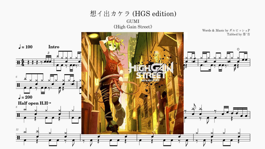 GUMI(グミ) – 想イ出カケラ(回忆碎片) Drum Score ドラム楽譜