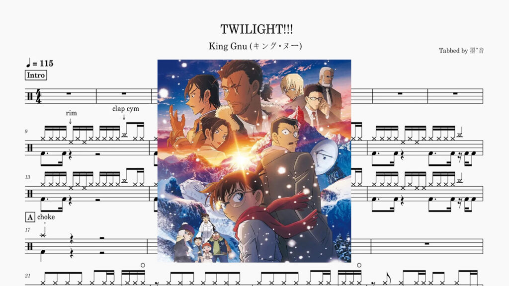 King Gnu - TWILIGHT!!!【名探偵コナン隻眼の 残像OP】 Drum Score ドラム楽譜King Gnu – TWILIGHT!!!【名探偵コナン隻眼の 残像OP】 Drum Score ドラム楽譜