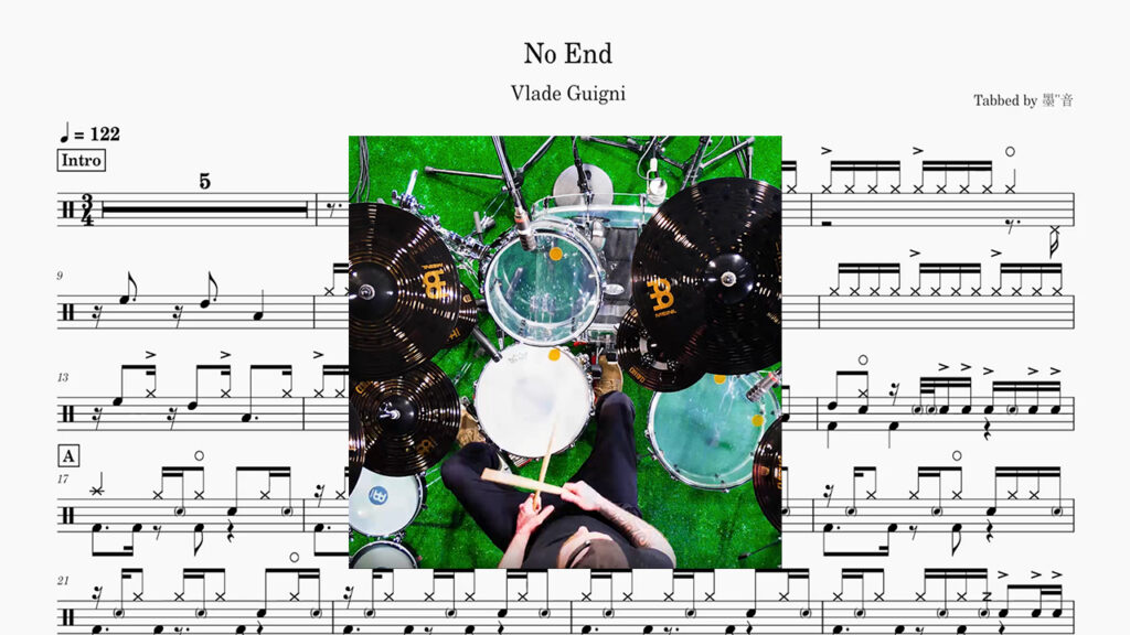 Vlade Guigni – No End Drum Score ドラム楽譜(Including drumless track)
